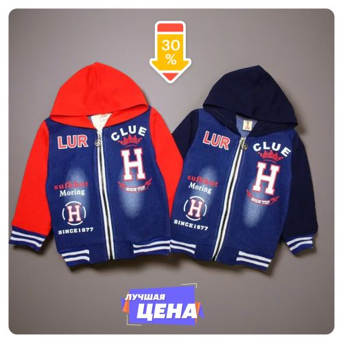 Толстовка комбинированная, грудь и спинка из джинсы, рукава трикотаж. Замеры: длина по спинке - 37см,39см,41см,43см, длина рукава - 37см,39см,41см,44см)