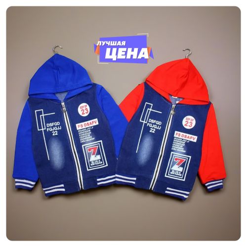 Толстовка комбинированная, грудь и спинка из джинсы, рукава трикотаж. Замеры: длина по спинке - 39см,41см,43см, 45см,длина рукава - 38см,41см,44см,47см)